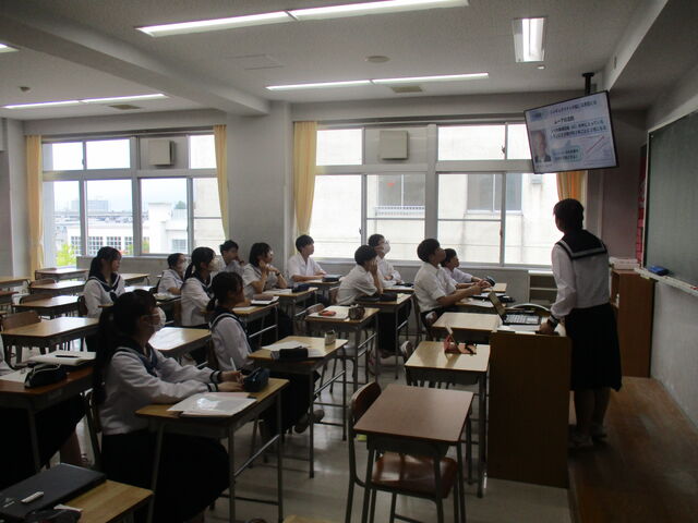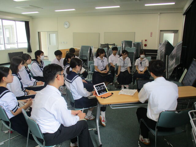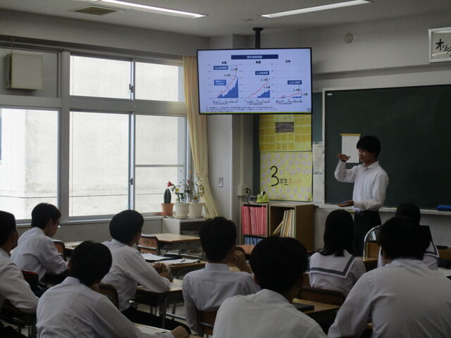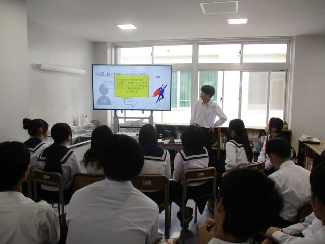 「よりよい社会を目指して」をテーマに世界の現状や課題から個人課題と仮説を立て探究活動を行ってきました。発表会では、よりよい社会のためにどのようなことが自分にできるのかを提言しました。