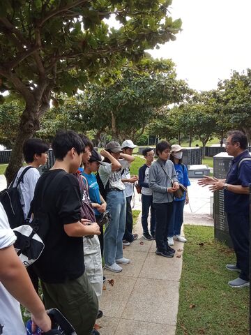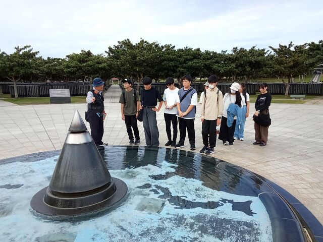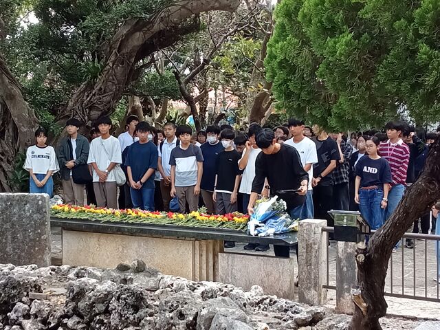 糸数壕(アブチラガマ)、ひめゆり平和祈念資料館、平和祈念公園、平和祈念資料館を見学してきました。糸数壕(アブチラガマ)では、手に持っている照明を一斉に消しすことで、戦火の中での暗闇がどのような状態であるのかを体験しました。ひめゆり平和祈念資料館では、ひめゆり学徒隊をはじめ大戦で犠牲となられた戦没者に献花し、平和への誓いを述べました。