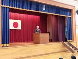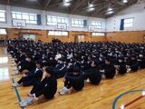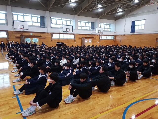 修了式に先立って、授賞伝達を行いました。修了式では山根校長先生から2年生には「中学校生活最後の一年を学びの集大成、自分の進路に向け有意義なラストイヤーとなるようにしてほしい」、1年生には「一年間の学校生活で得た経験を活かし、広い視野で入学してくる新一年生の後輩たちによき姿を見せてほしい」との励ましの言葉をいただきました。